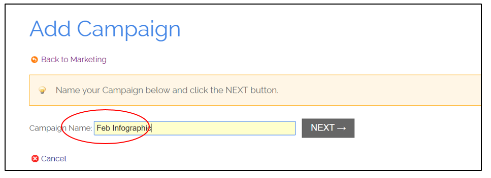 Give your campaign a name (this is for internal purposes only). Click Next.