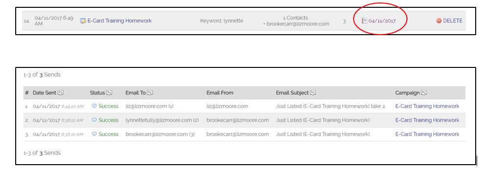Go back to Email Marketing and click on the date to the right of your eCard under the “Last Sent” column.