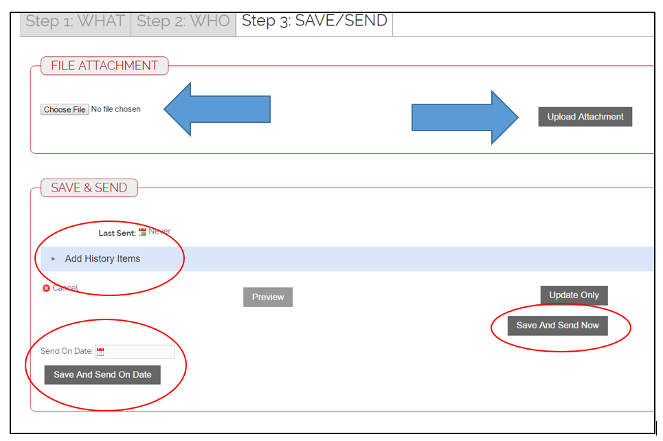 You can send on a future date by adding the date in the “Send On” box and clicking “Save and Send on Date”.