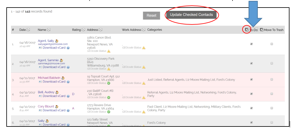 A list of all of your contacts will generate. To add contacts to to-dos, click the box in the to-do column next to the contact’s name, and then click Update.
