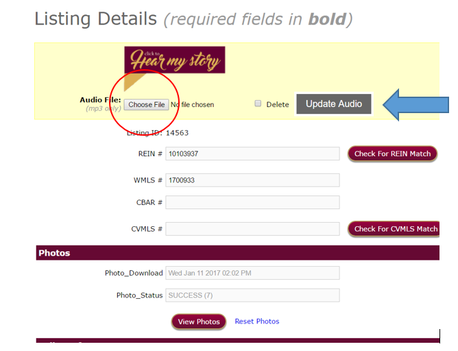 Click Choose File under “Hear My Story” to upload the audio file. Browse for it on your computer, double click on the file, then click Update Audio.