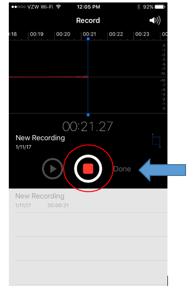 Click on the red button to start recording. Speak loudly and slowly. Click the same red button to stop the recording. Then, click Done.