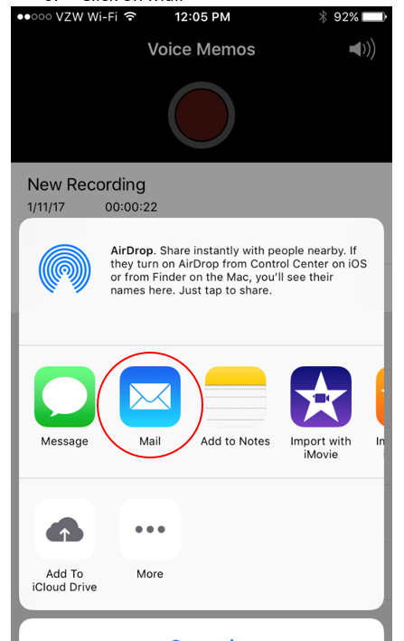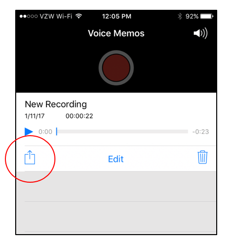 Click on the share icon to email the recording to yourself.