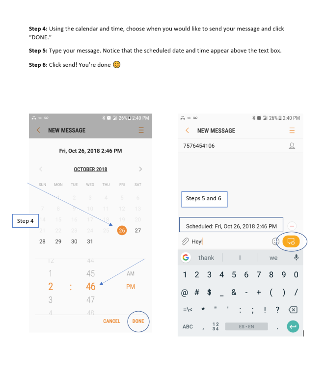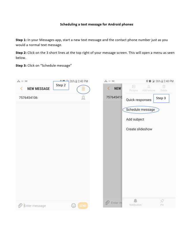 Scheduling a Text Message with an Android Phone Lynnette Tully October 26, 2018 19:53 Updated Scheduling a text message for Android phones.pdf 600 KB Download Comments 0 comments Please sign in to leave a comment.